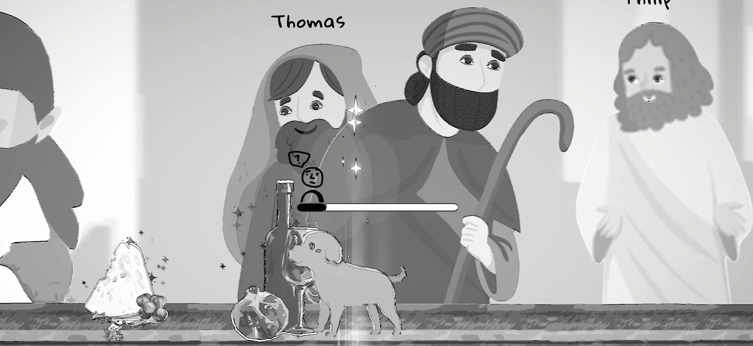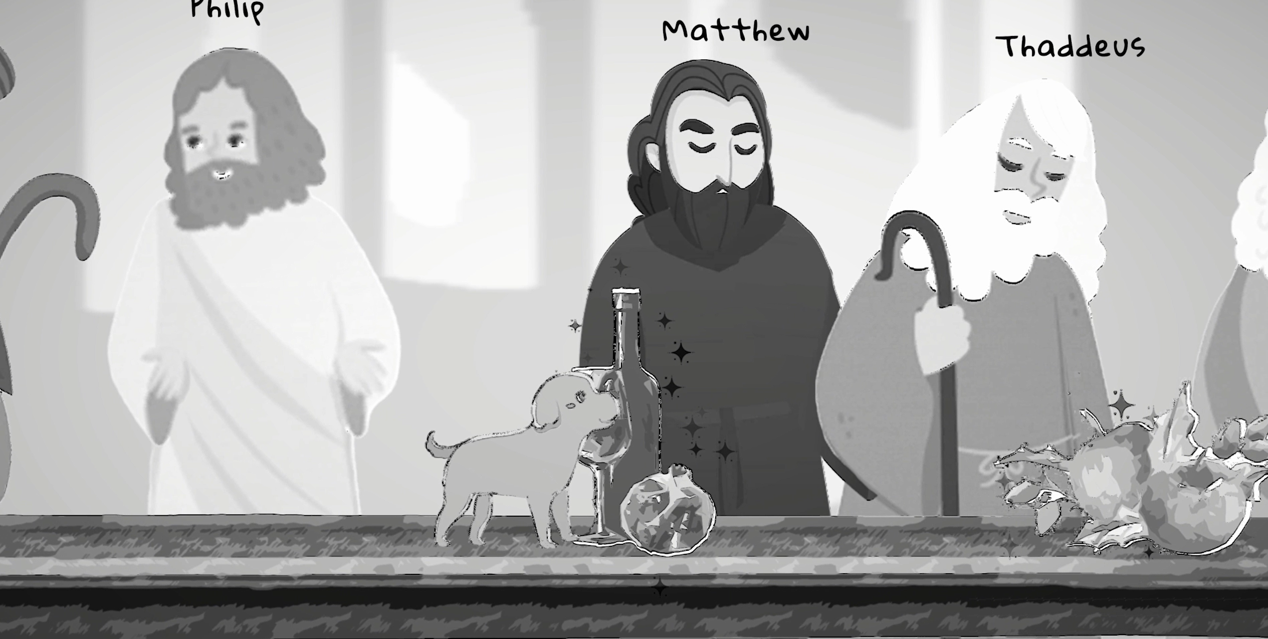 Imagine Tom and Jerry meet The Last Supper, Rufus’ cheeky behaviors at the dinner table will shape the game’s outcome, reflecting biblical tales with a touch of playful dark humor.